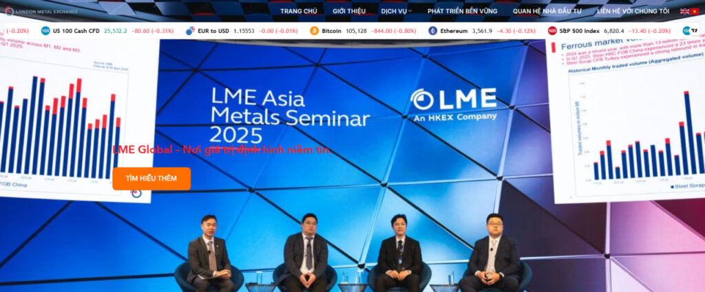 Vào đầu năm 2025, LME Global chính thức công bố hợp đồng hợp tác chiến lược với hai công ty phần mềm hàng đầu của Việt Nam là CMC Solutions Việt Nam nhằm nâng cấp hệ thống sàn giao dịch của mình. Sự hợp tác này thể hiện bước tiến quan trọng trong việc ứng dụng công nghệ cao để nâng cao hiệu quả hoạt động, tối ưu hóa tốc độ giao dịch và đảm bảo an toàn, bảo mật tuyệt đối cho các giao dịch toàn cầu của LME. CMC Solutions sẽ cùng tham gia phát triển các giải pháp phần mềm tiên tiến, hiện đại, mang lại khả năng tùy biến phù hợp với các tiêu chuẩn quốc tế khắt khe của LME Global.